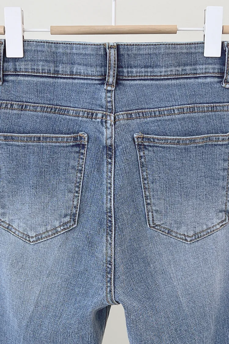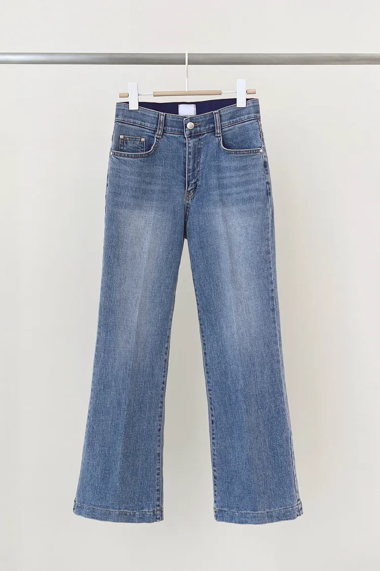 26-04H104腰部隱藏鬆緊壓線微喇叭牛仔褲