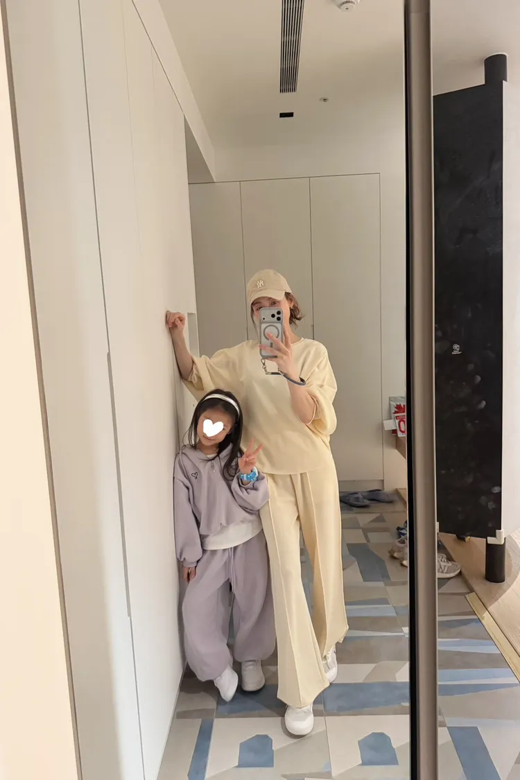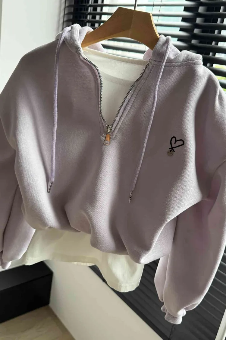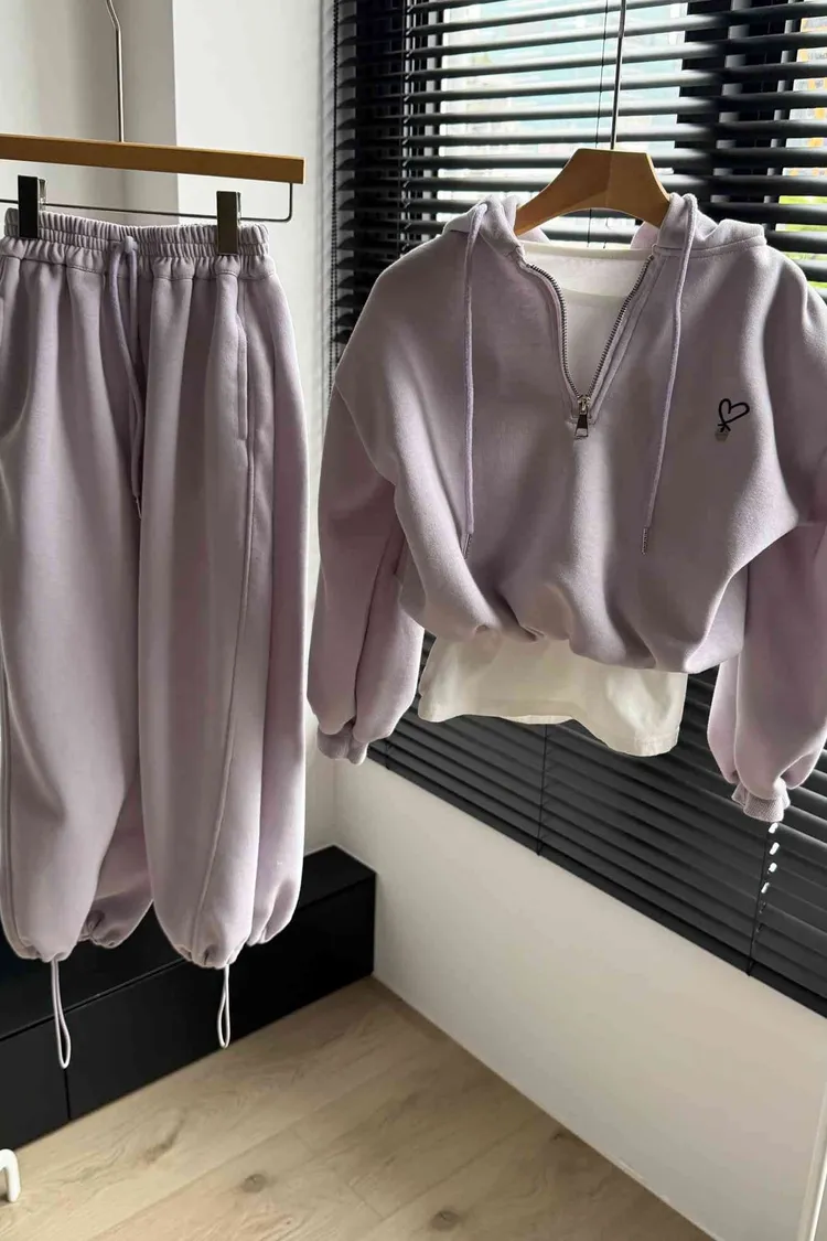 26-04k017愛心刺繡假兩件上衣+縮口褲set